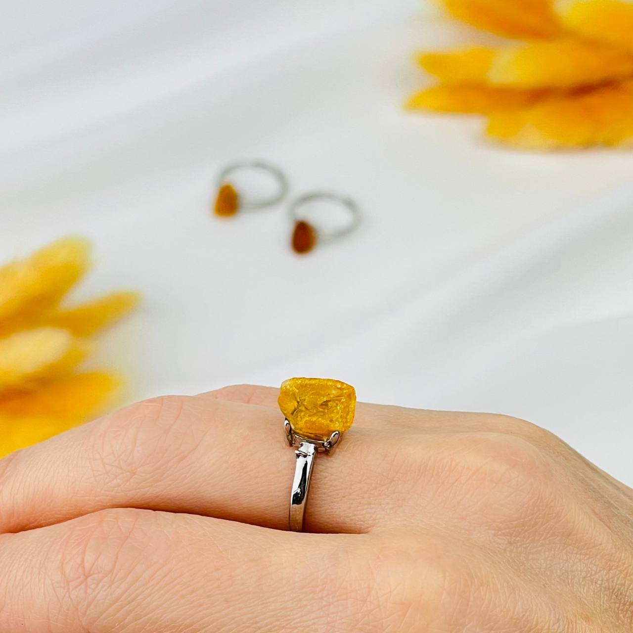 Кольцо регулируемое из необработанного Янтаря