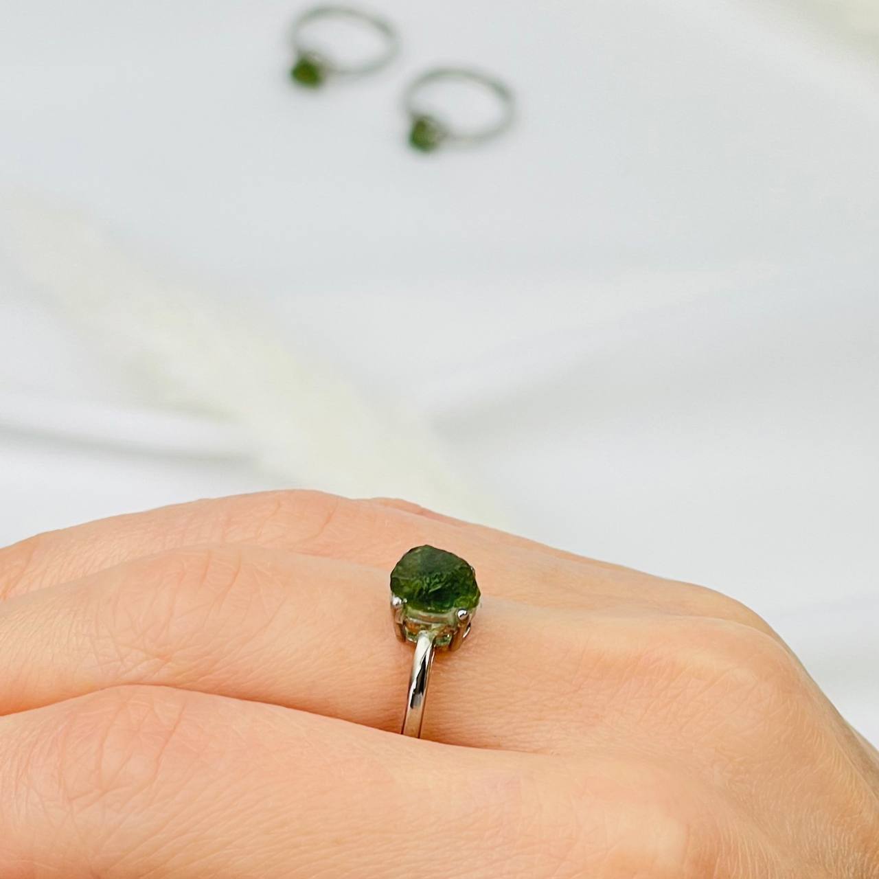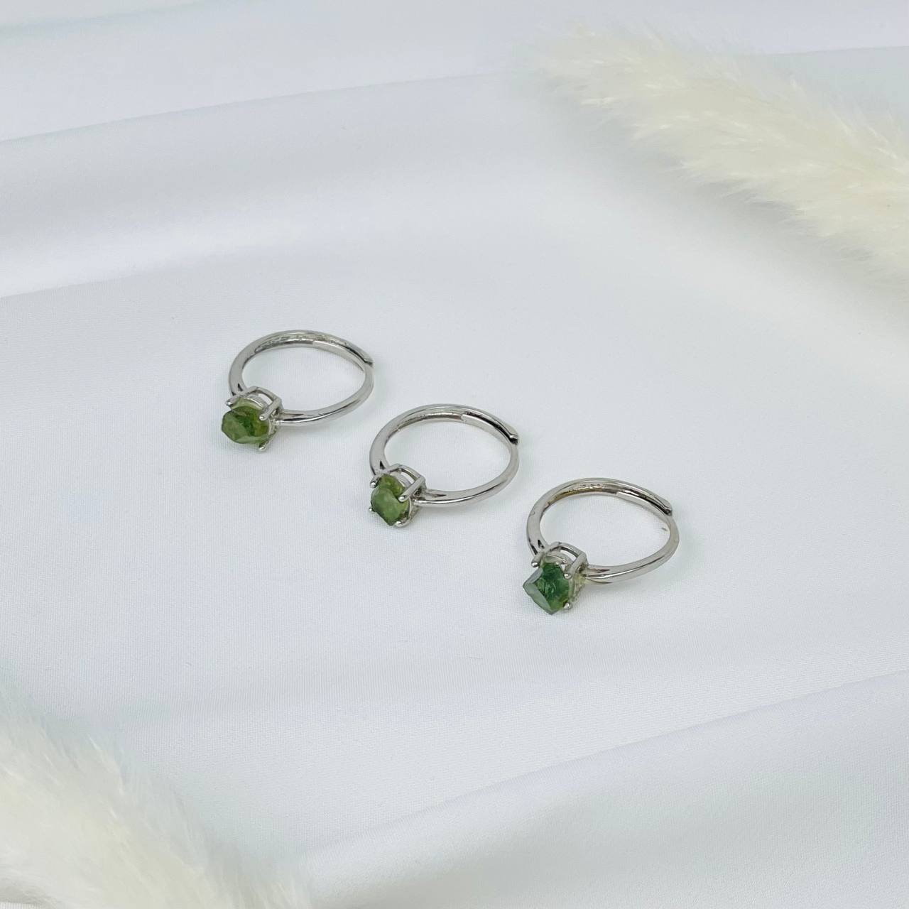 Кольцо регулируемое из необработанного зеленого Турмалина