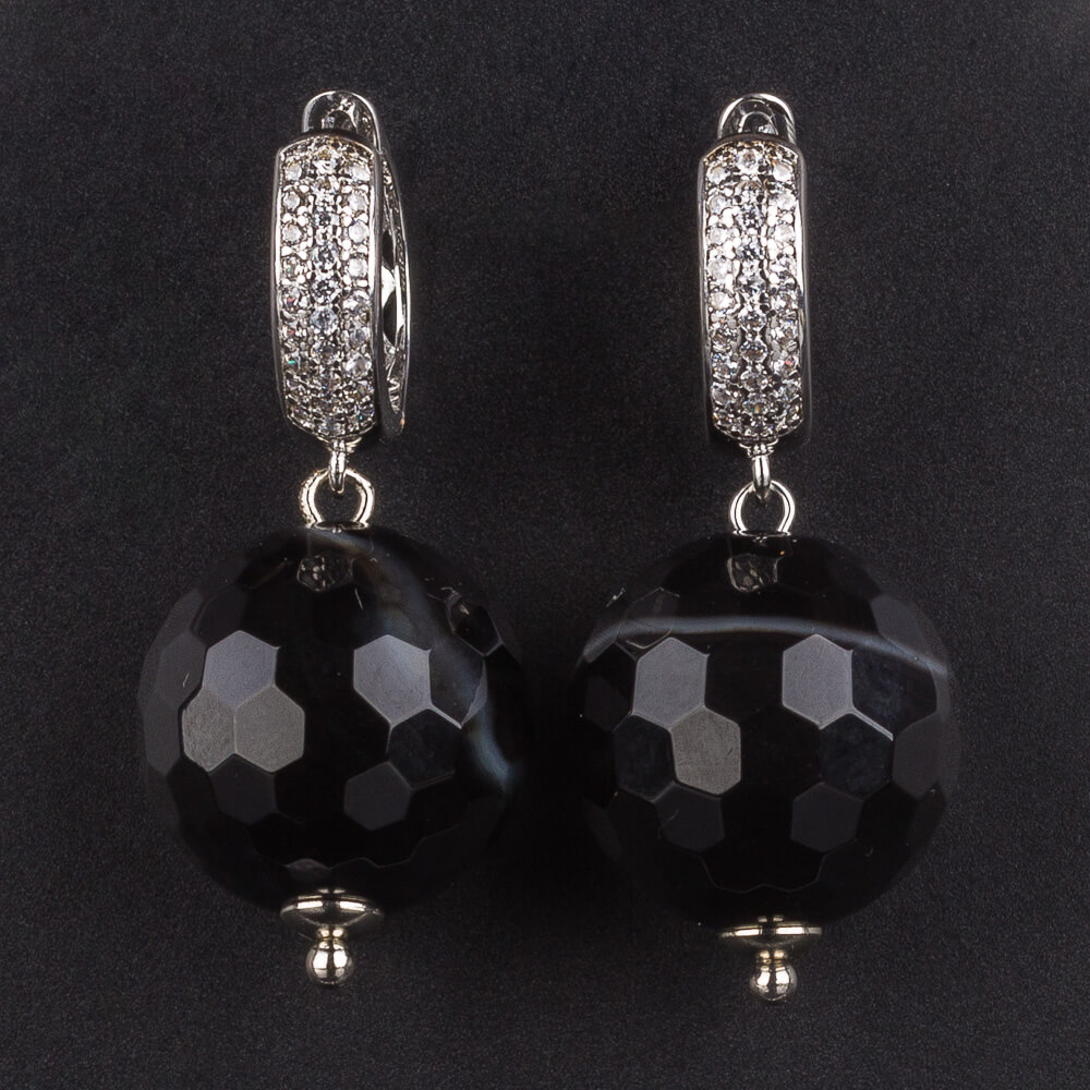 Серьги Агат чёрный огранка