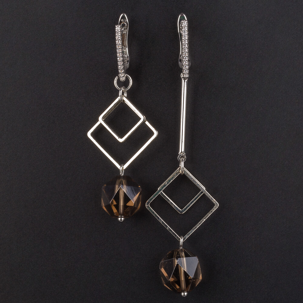 Серьги "Асимметрия" из Раухтопаза (Бразилия)