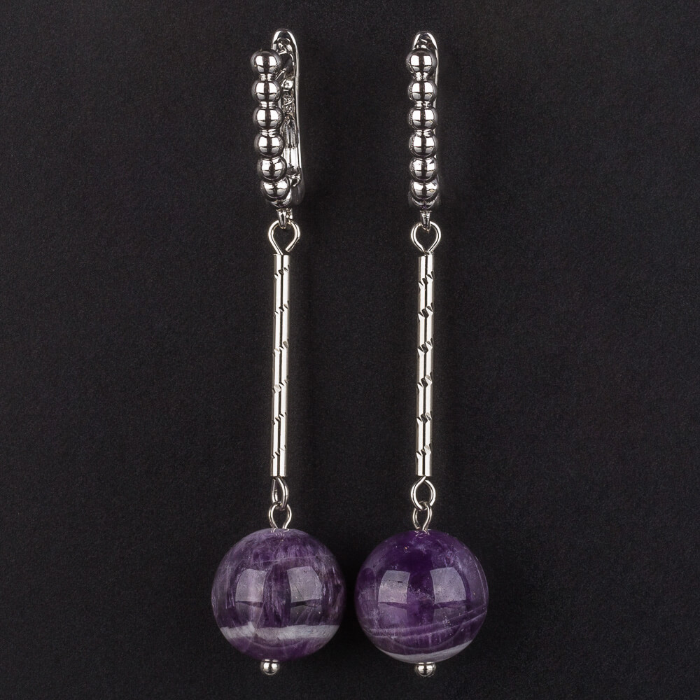 Серьги длинные из Аметиста шевронного (Бразилия)