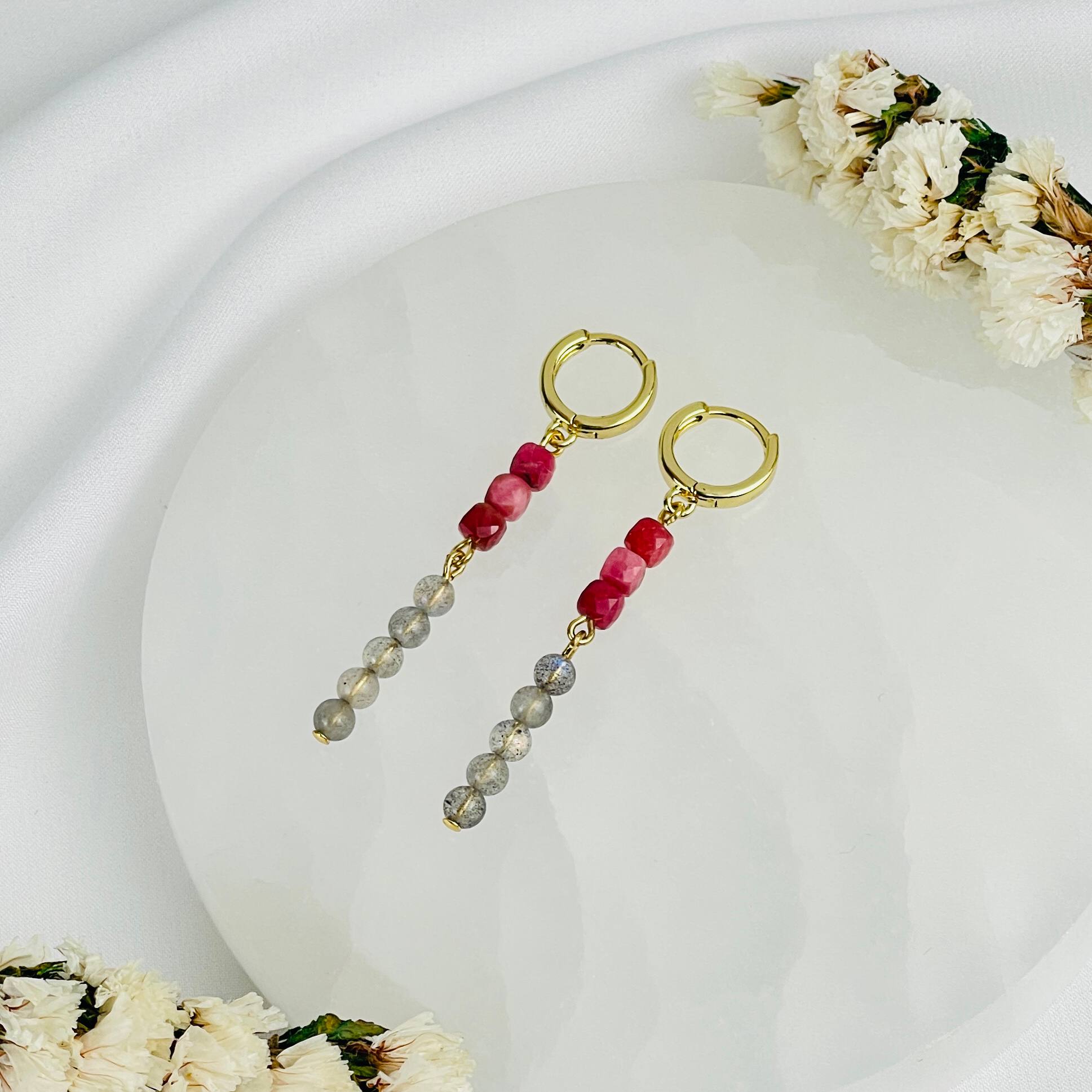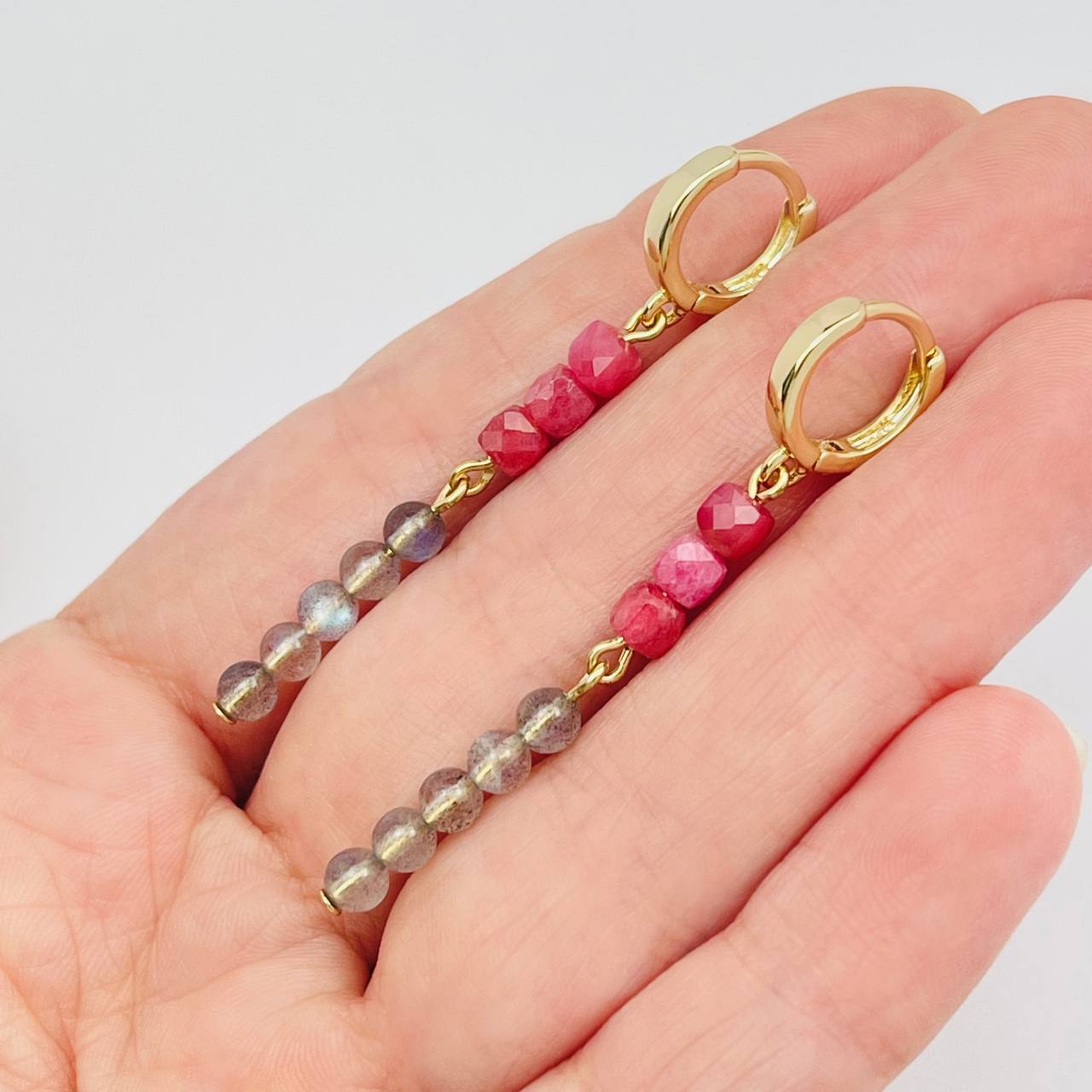 Серьги длинные из Родонита и Лабрадора