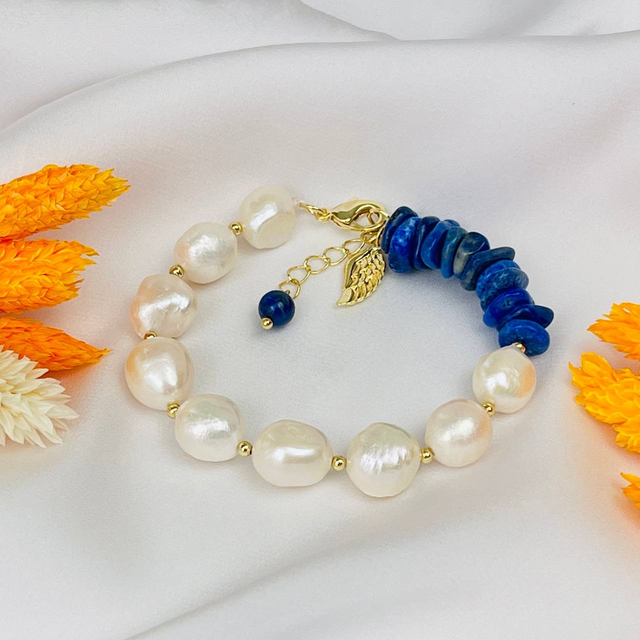 Серьги из Лазурита и Жемчуга с цепочкой