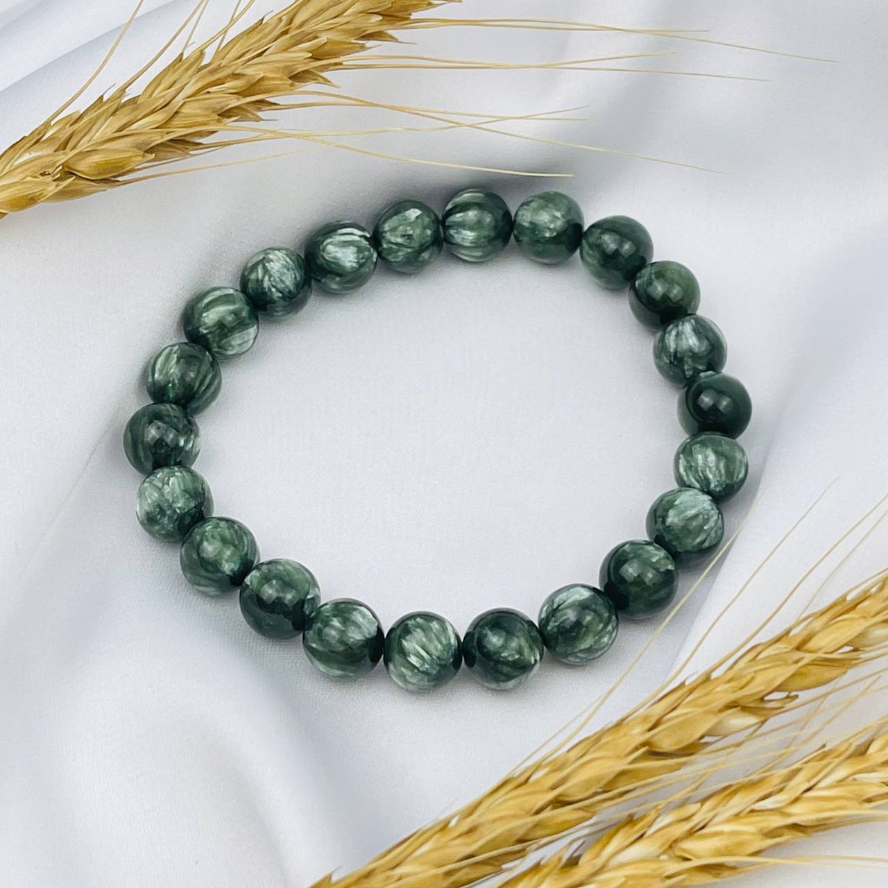 Возможно, серафинит говорит с вами о легкости духа — его узоры, похожие на перья, напоминают, что ваша истинная природа свободна и не знает тяжести обид или страха.