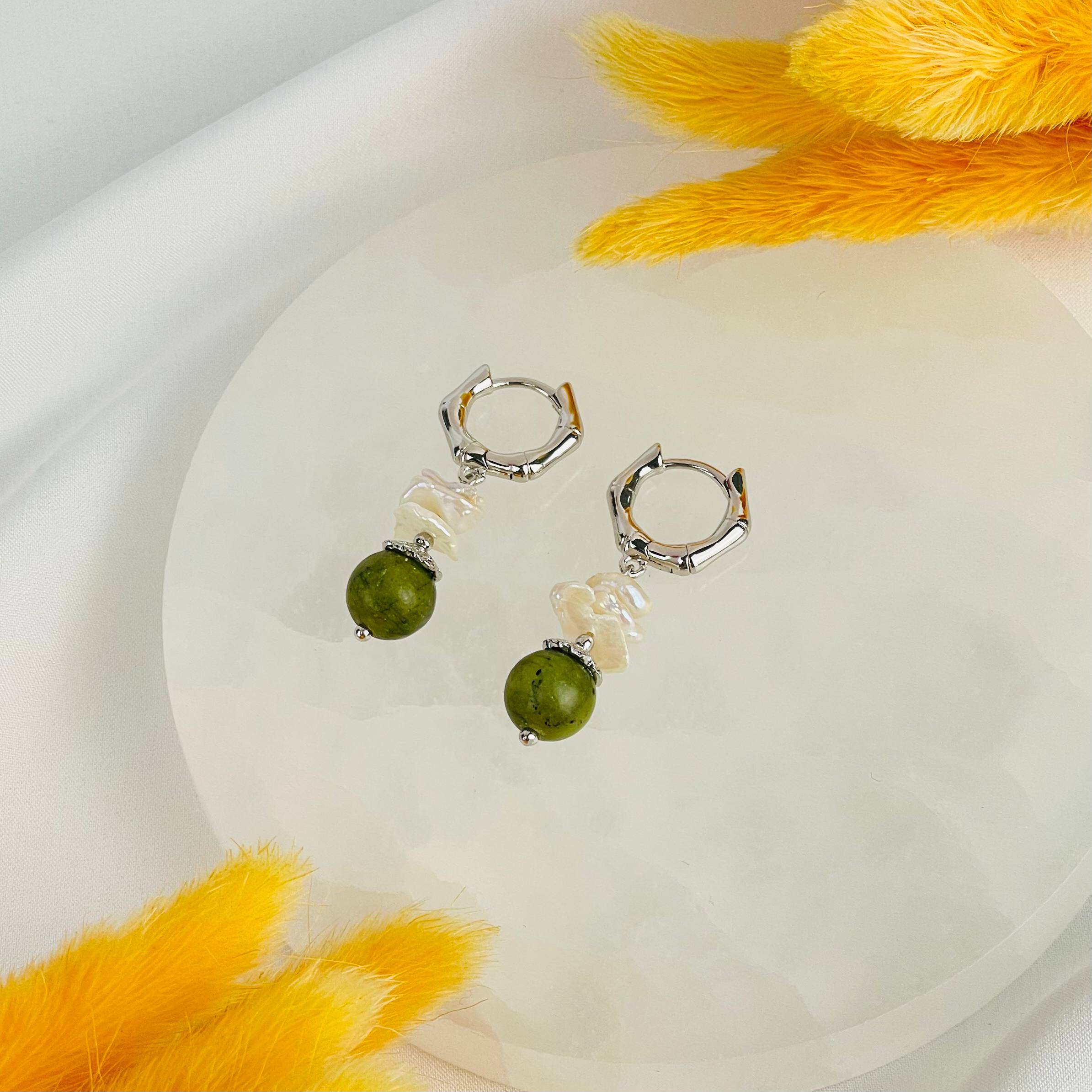 Серьги из Змеевика и Жемчуга