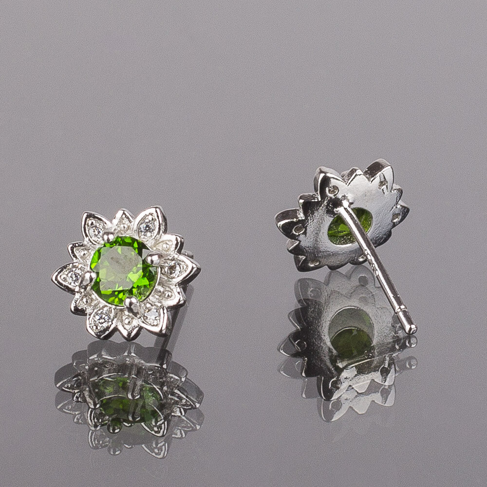 Серьги-пусеты Хромдиопсид "Якутский изумруд" (Россия)