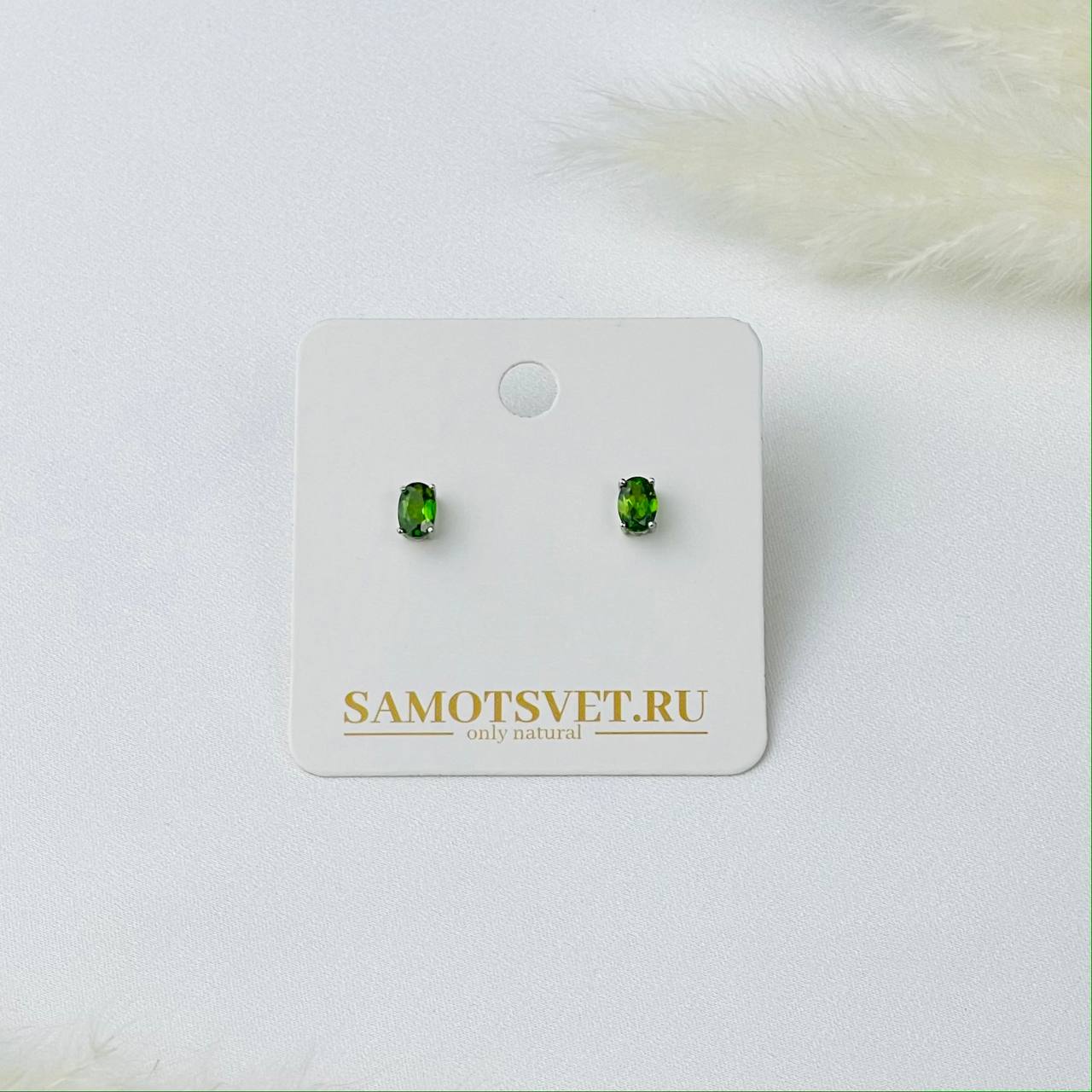 Серьги-пусеты Хромдиопсид "Якутский изумруд"
