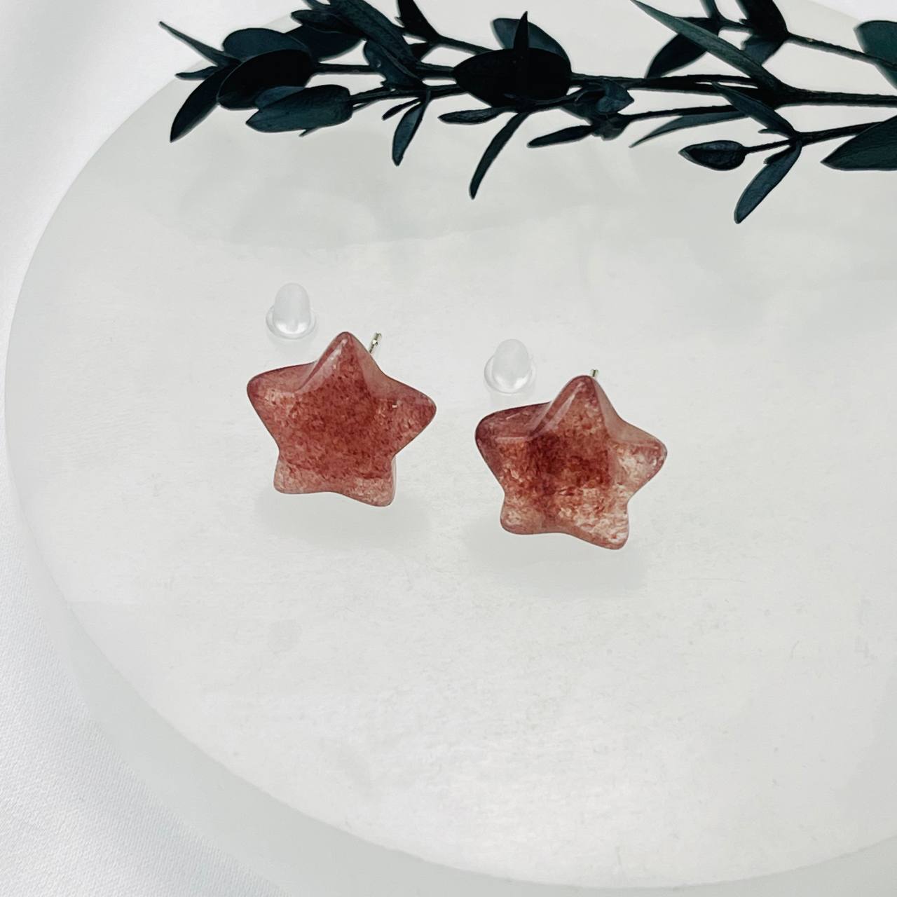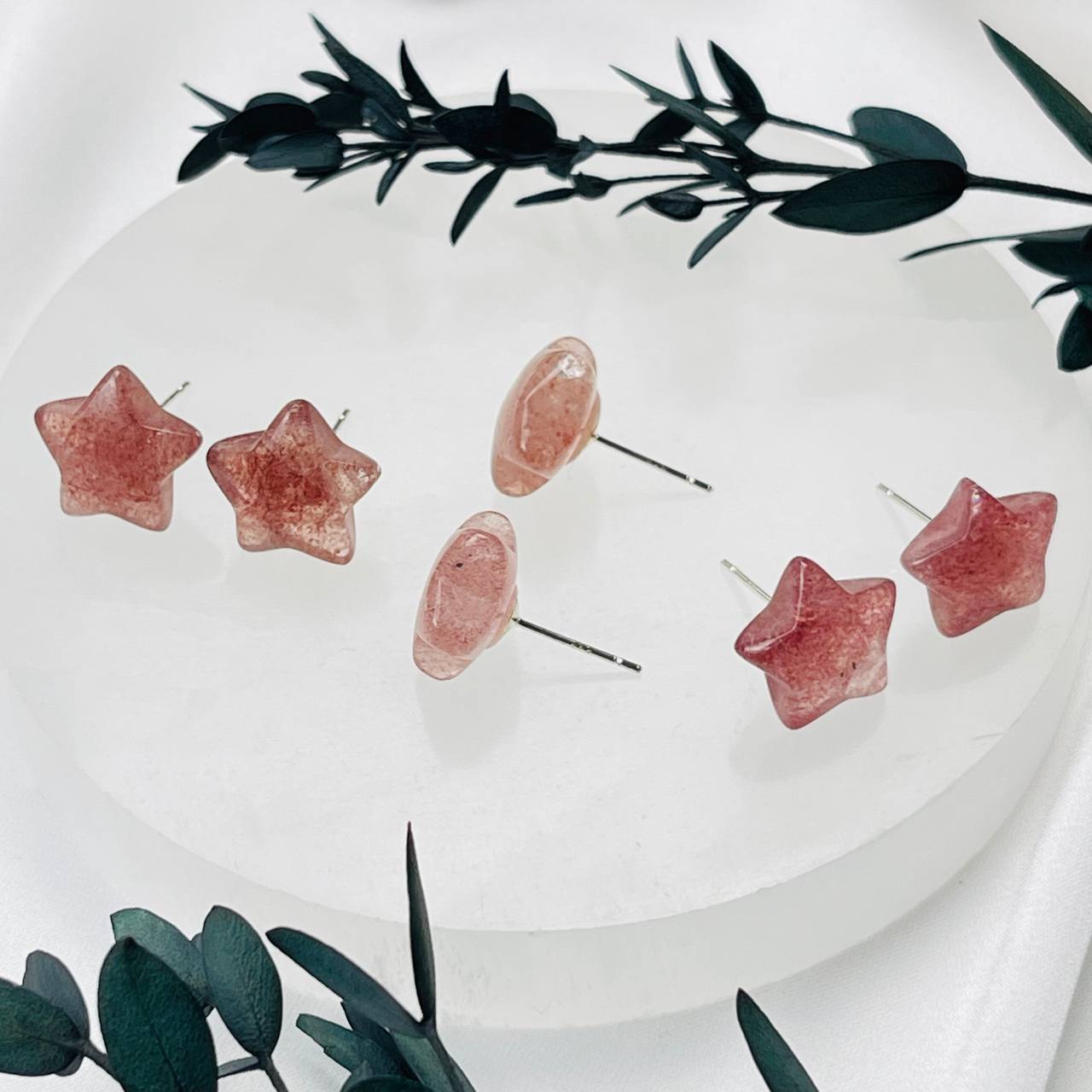 Серьги-пусеты с камнем Клубничный кварц