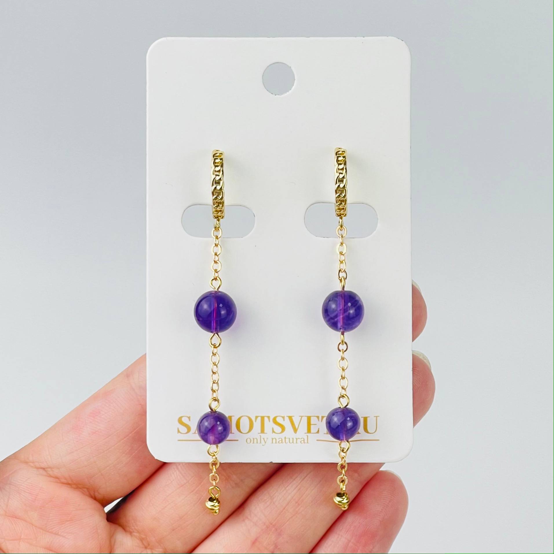Серьги с цепочкой из Аметиста