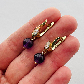 Серьги из Аметиста, 10 мм, гладкий, английский замок, Бразилия