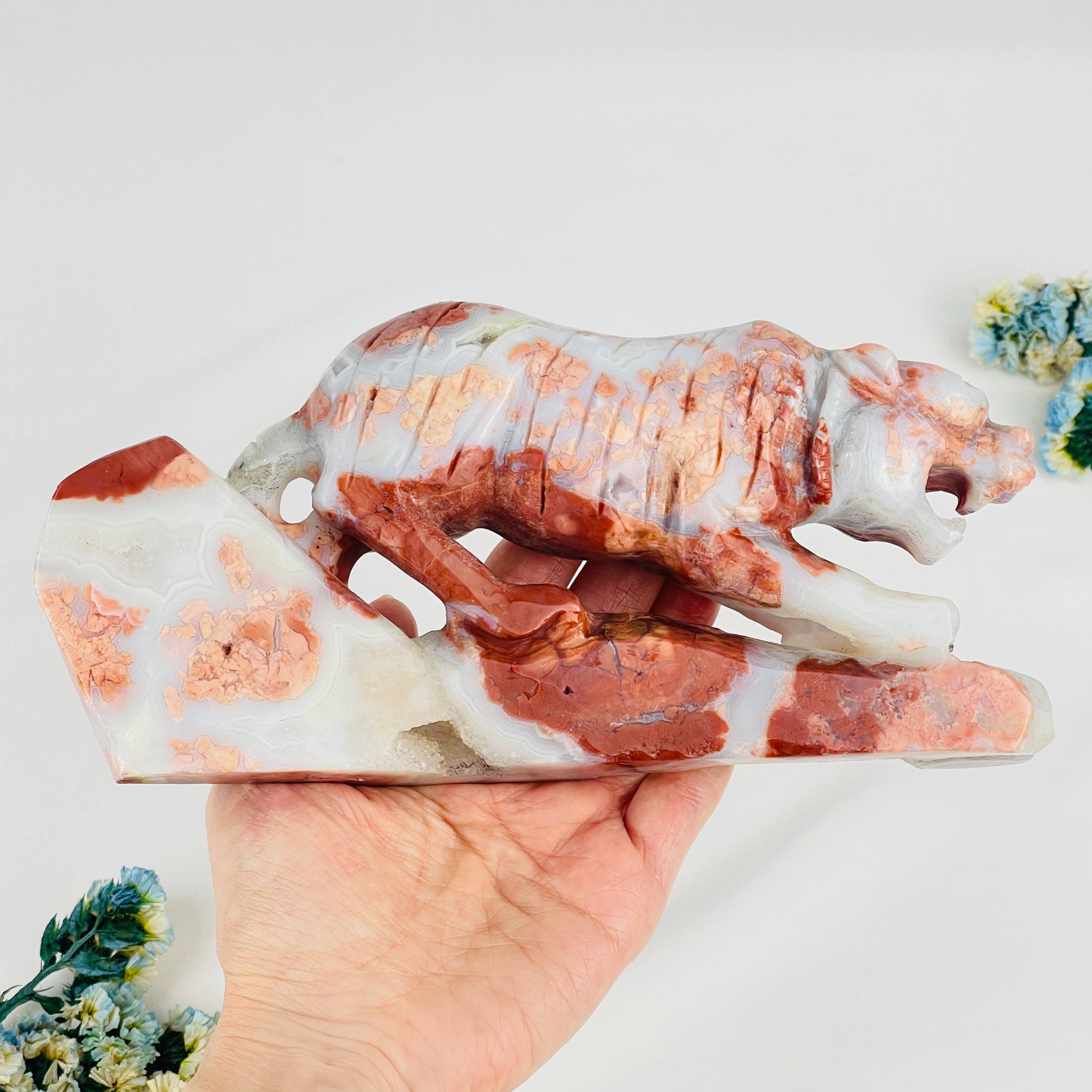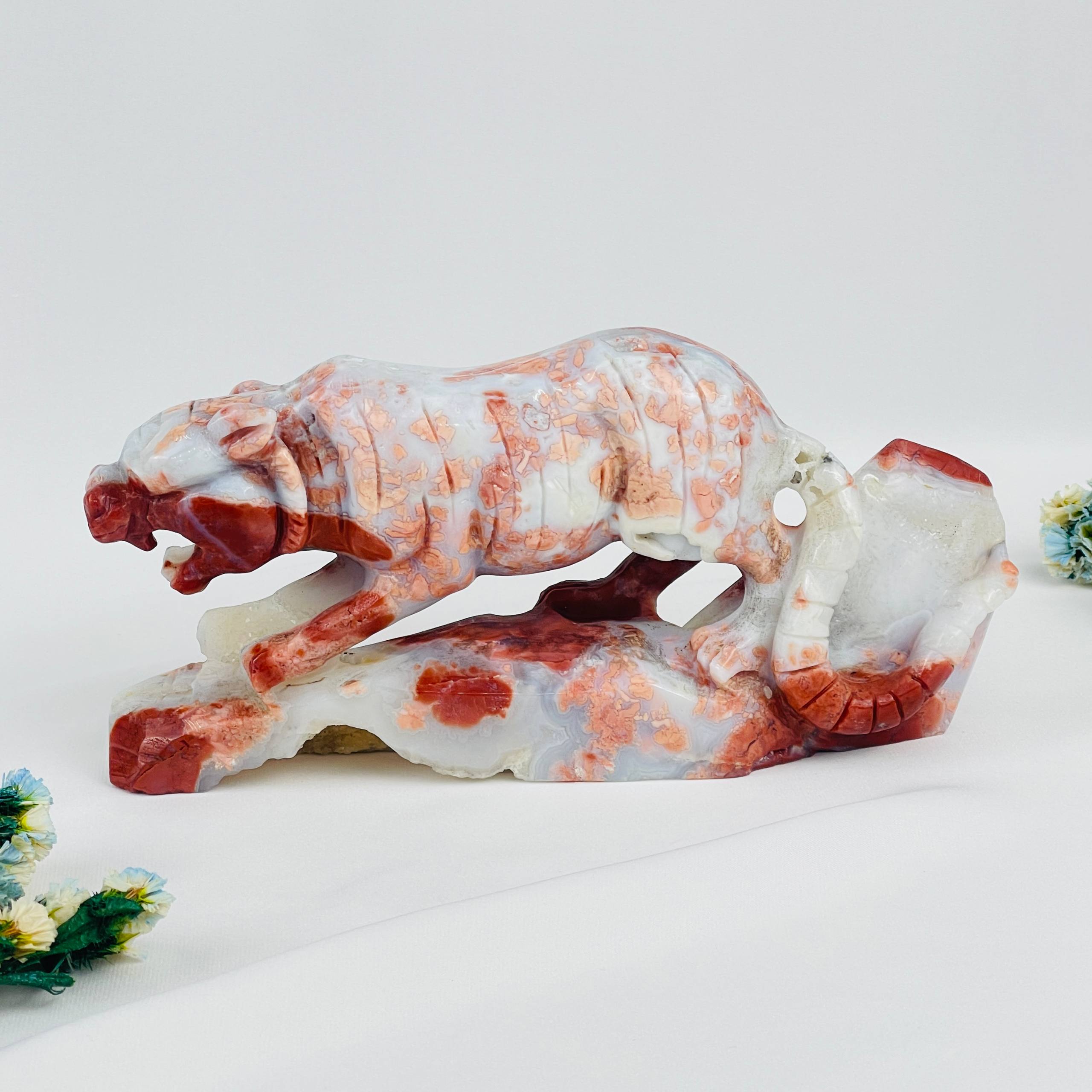 Статуэтка Тигр из розового цветочного Агата