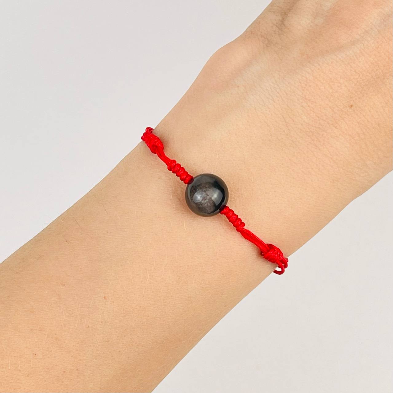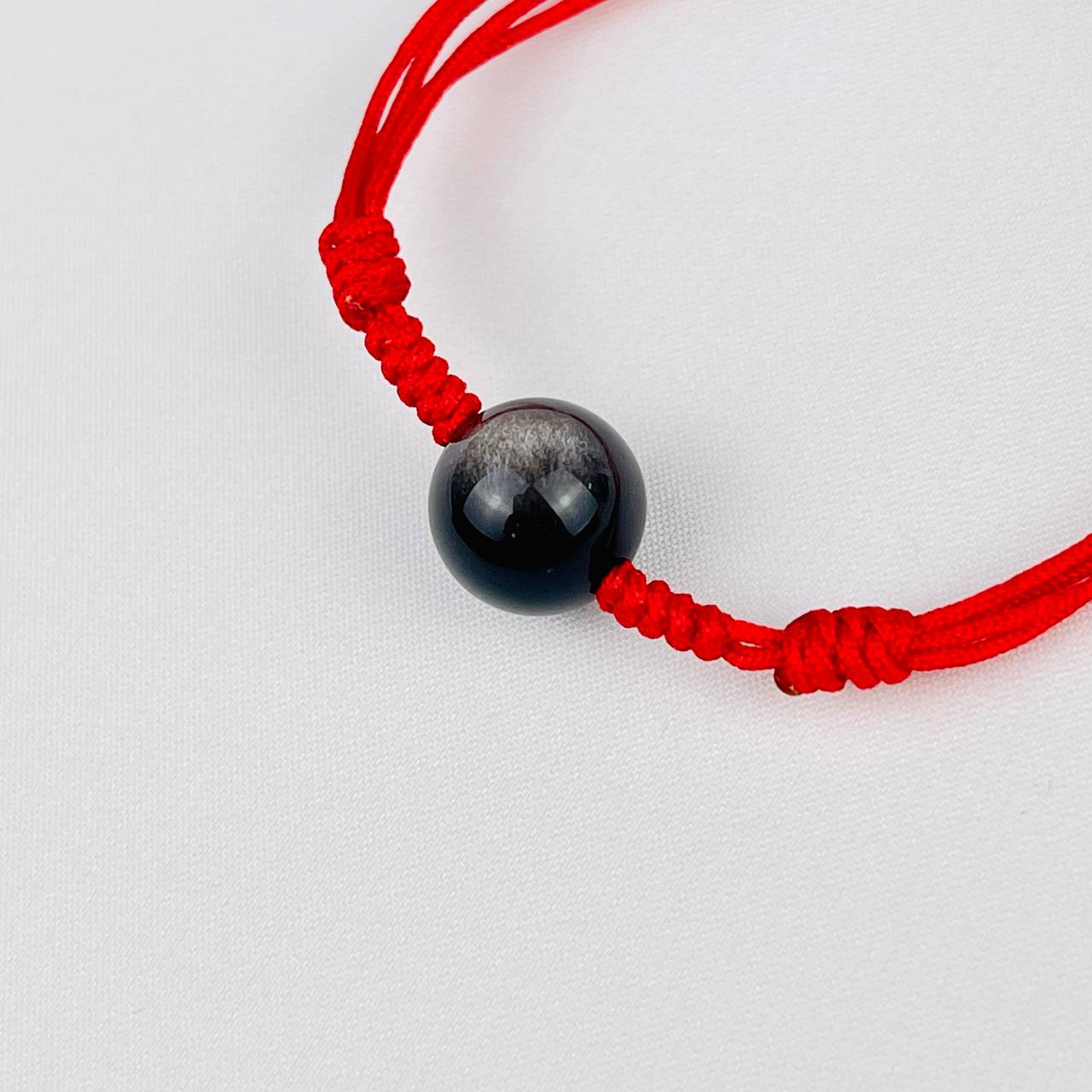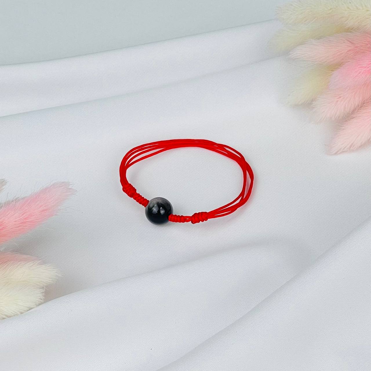 Защитный браслет Красная нить с серебристым Обсидианом
