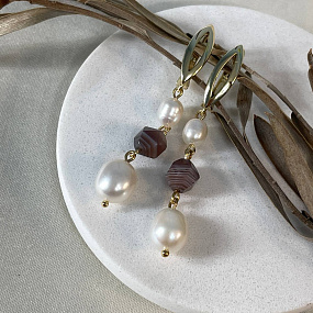 Серьги длинные из Жемчуга, Змеевика и Перламутра, 3-9 мм, гладкий/Необработанный, Китай